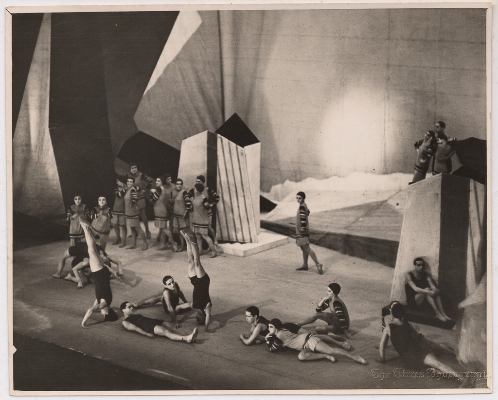 Ballets Russes production of Darius Milhaud’s Le Train Bleu from June 20, 1924, at the Théâtre des Champs-Élysées in Paris. Stage design: Pablo Picasso and Henri Laurens. Costumes: Coco Chanel. Choreography: Bronislava Nijinska. (Image from Library of Congress)